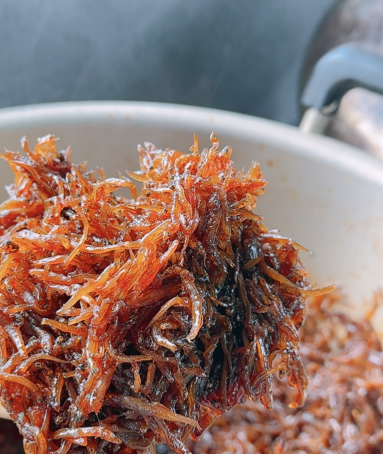 ぴちぴちの生しらすと梅を丁寧に炊き上げ、旨みをぎゅっと凝縮し、醤油の風味で包み込みました。 梅のほどよい酸味がアクセントになり、上品で奥行きのある味わいに仕上げました!